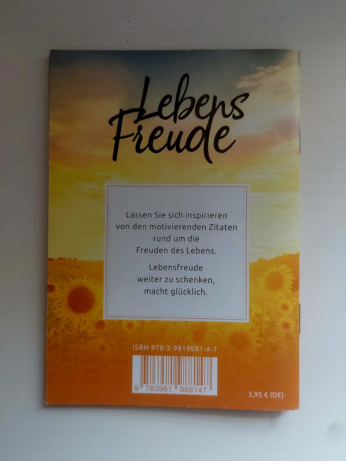 Glücklichsein 4,95 € | Sonnen Seiten 3,95 € | Licht im Dunkeln 3,95 € | Lebensfreude 3,95 € | Geburtstagswünsche 4,95 | Danke 3,95 €